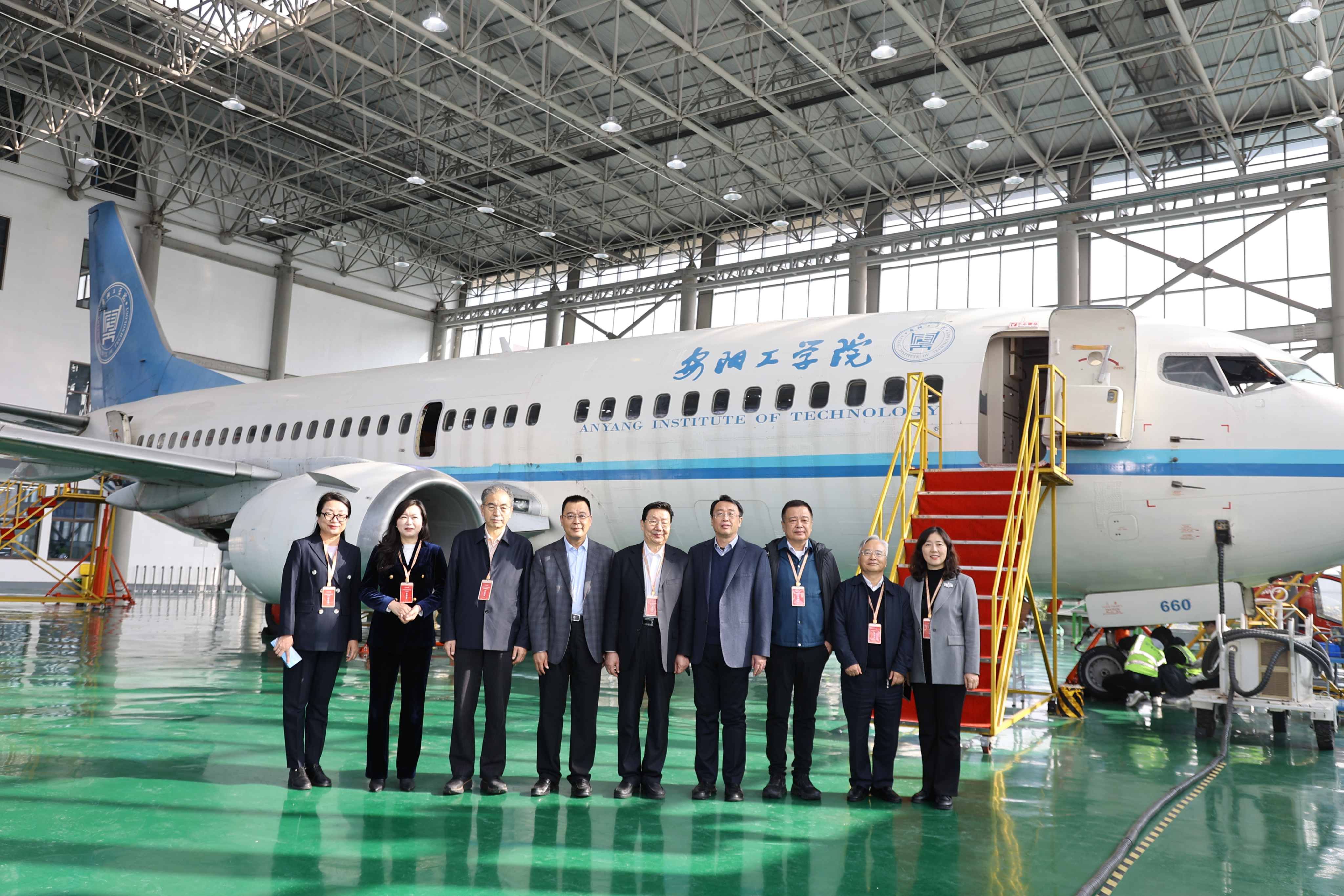 专家组考察航空综合实训中心并合影留念