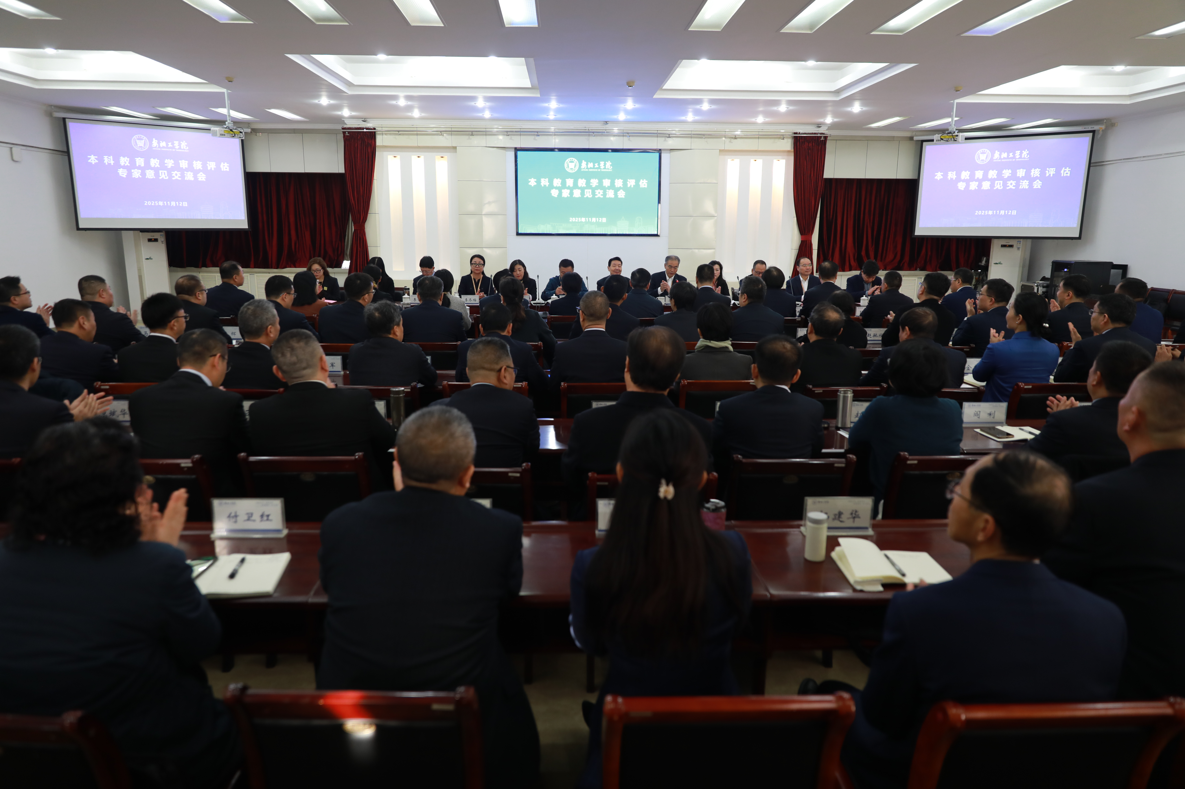 11月12日,学校本科教育教学审核评估专家意见交流会召开。教育部本科教育教学审核评估专家组组长、大连理工大学原副校长李志义,专家组副组长、西安科技大学原副校长李树刚及专家组成员任慧平、张海涛、佟玉平、冯小明、李冬梅、周平、李青彬,河南省教育厅党组成员、省委教育工委专职副书记刘林亚,安阳市人民政府副市长常慧芹,河南省教育厅高等教育处处长闫治国,省高等学校教育教学评估管理服务中心主任祝玉华,我校全体校领导出席会议。全体中层正职(含主持工作的副职)、评建办全体工作人员参加会议。交流会由专家组副组长、西安科技大学原副校长李树刚主持。